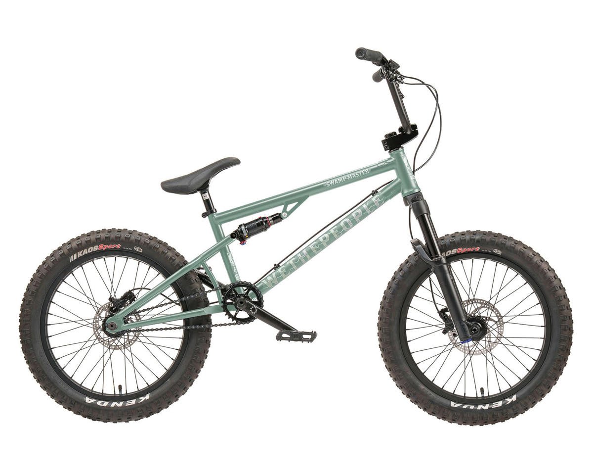 A whole new world of fun, the SWAMP MASTER is the first full suspension complete BMX bike. Inspired by the world of downhill mountain biking, mixed with classic BMX roots and fun, this bike is unique to say the least. Engineered in Cologne, Germany, the SWAMP MASTER is designed for serious downhill shredding whilst gaining the movement and freedom that a BMX bike offers. Spec’d with a mixture of our own aftermarket BMX components and genuine MTB parts from Kenda and Manitou, the SWAMP MASTER is the first production complete bike of its kind and is set to revolutionize a new chapter in BMX and MTB fusion.